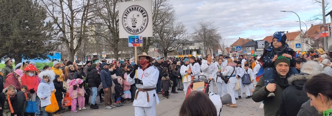 Wenn sich weiße Judo-Gis mit bunten Perücken, Hawaii-Ketten und Cowboyhüten mischen, dann ist klar: In
